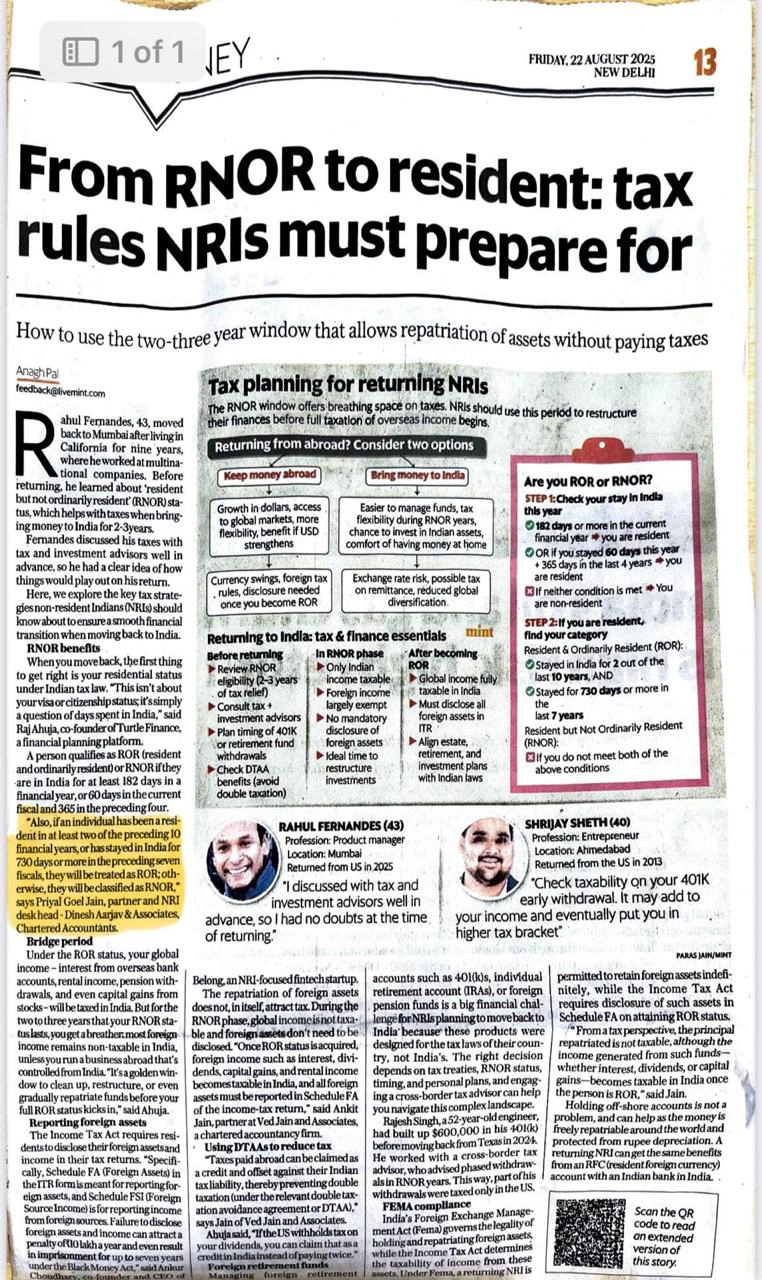 Read MoreAs a professional Chartered Accountancy firm, our insights on taxation, cross-border finance, and NRI advisory are often sought by reputed publications. Over the years, we have been quoted and referenced in articles that discuss evolving tax laws, compliance requirements, and global financial matters.